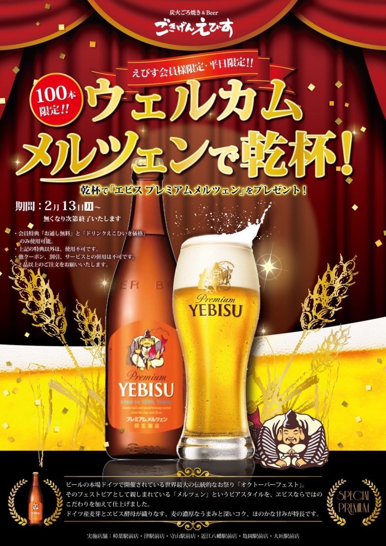 乾杯時“YEBISUプレミアム・メルツェン”をプレゼント致します🎁